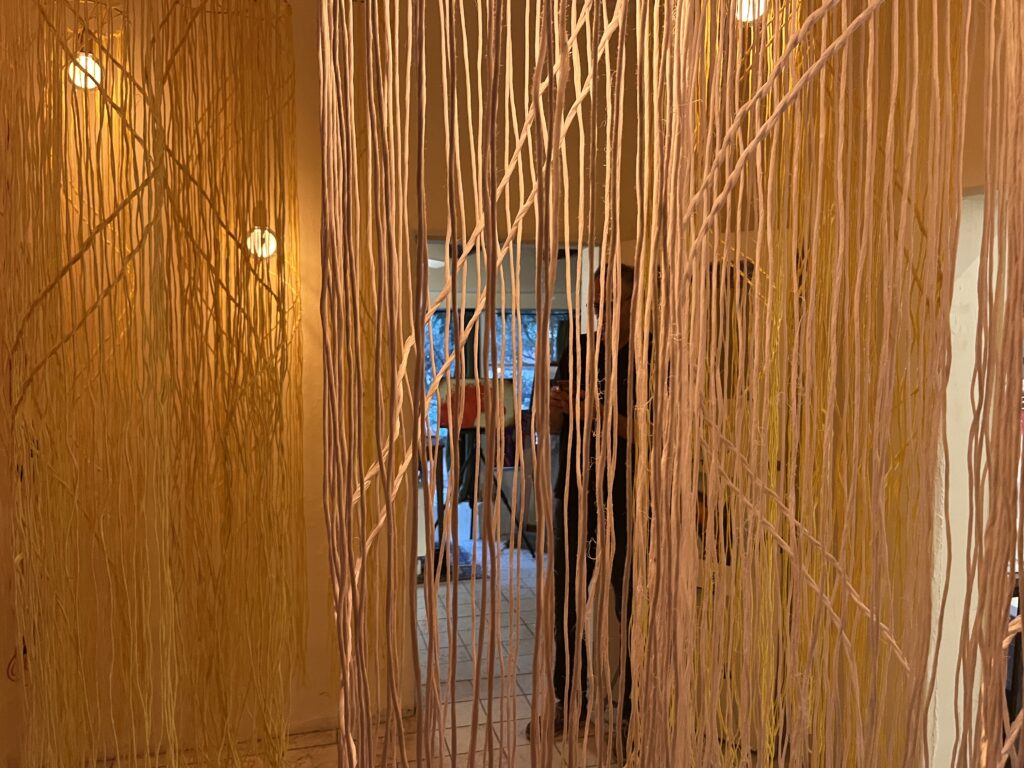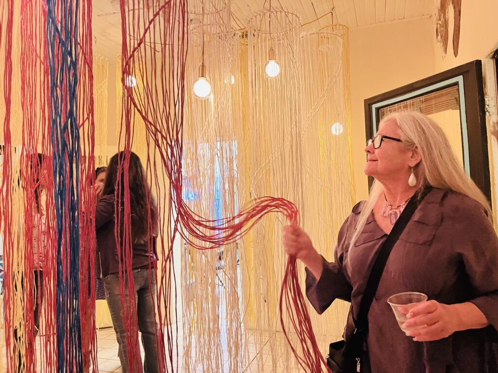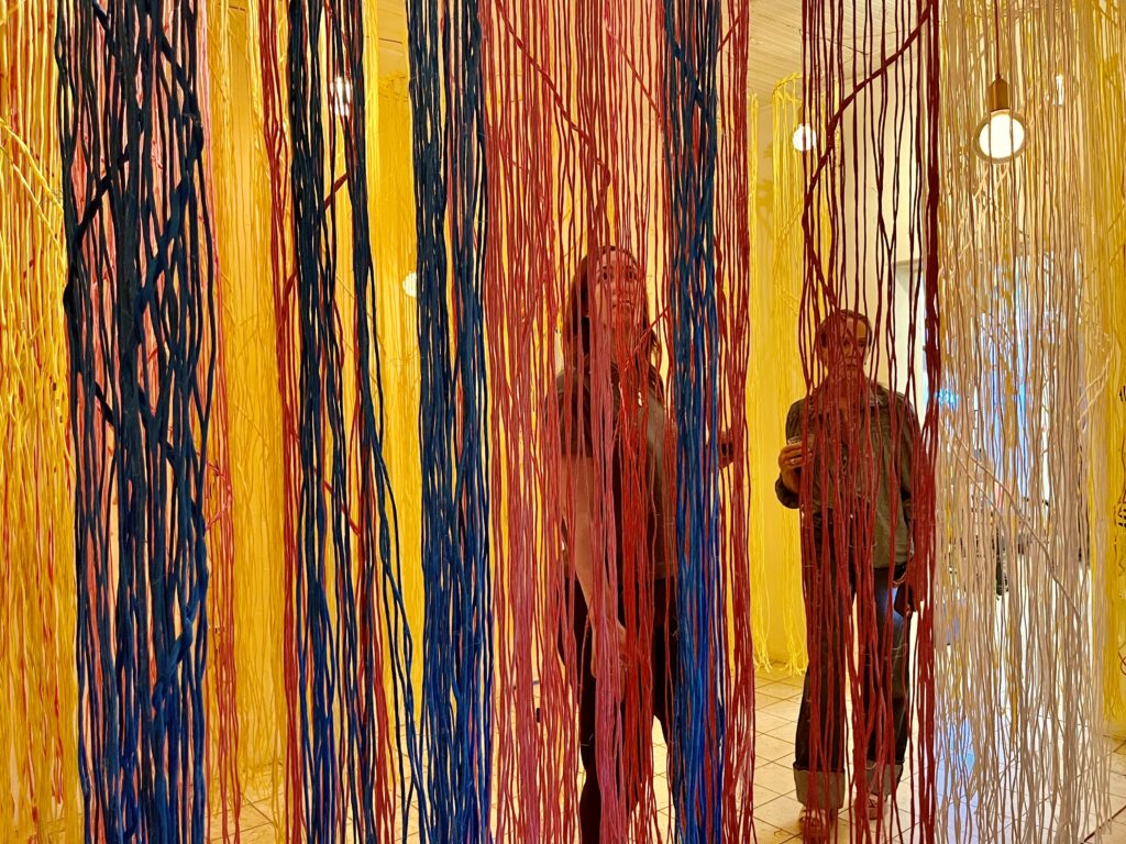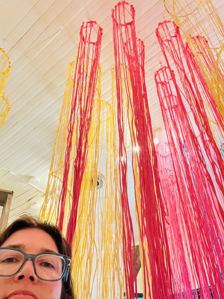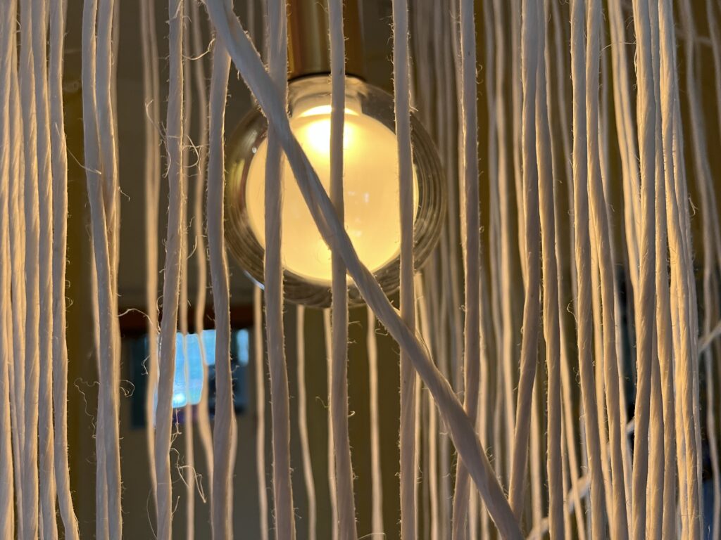 The map is a walk-through environment built out of ‘moments’ spent in each state of consciousness. Each moment is represented by a columnar mobile with delicately woven spirals that rotate gently as participants walk through. Each state is a different color, design, and size crafted out of organic 4mm single strand cotton cord.